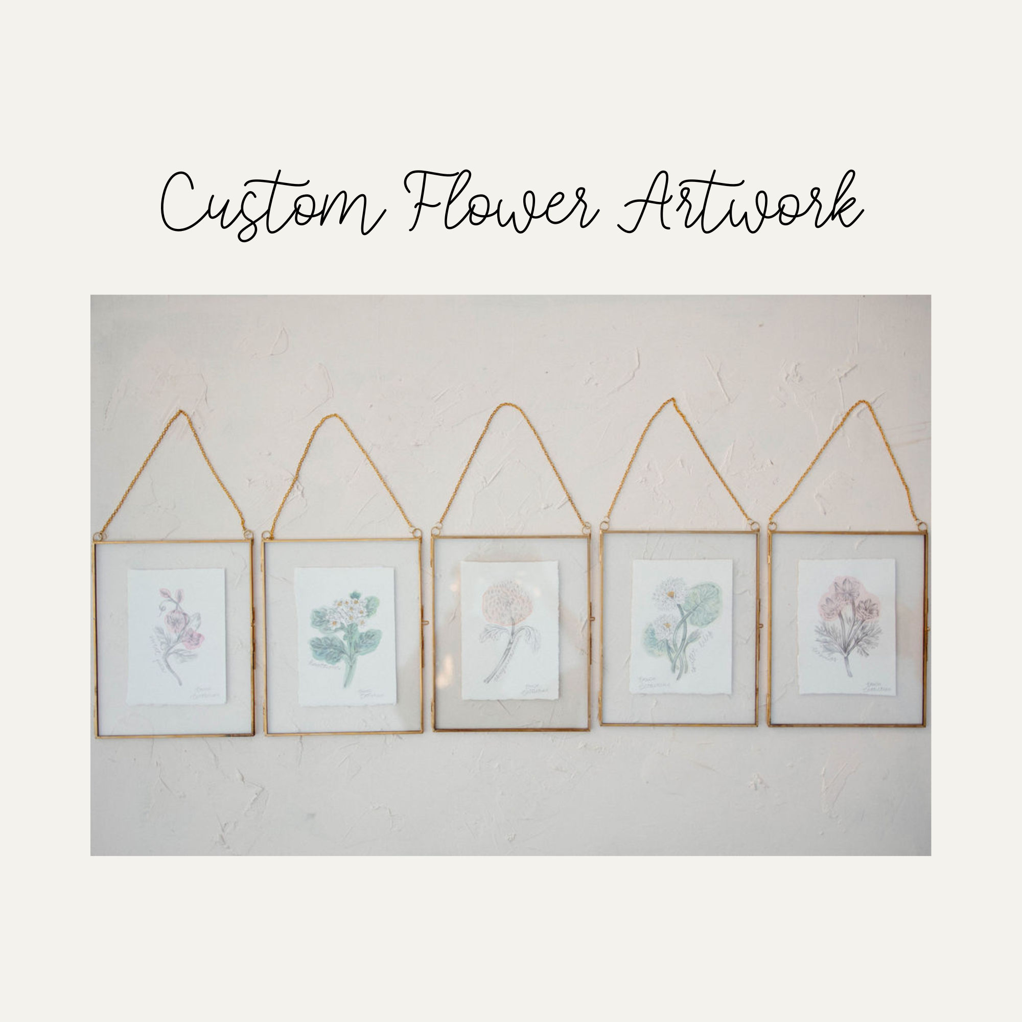 For the unique people in your life, the custom flower illustration will be the perfect way to celebrate what makes each person special. Each original drawing starts with a sketch in Erica's sketchbook, then each piece of paper is hand torn to form the perfect size for each drawing. To add a little extra fun to each piece, small pools of watercolor are added to the paper forming fun shapes that are unique to each art work. The sketches are then transferred and hand drawn in graphite creating a series of unique drawings that are similar but each have their own individual personality.